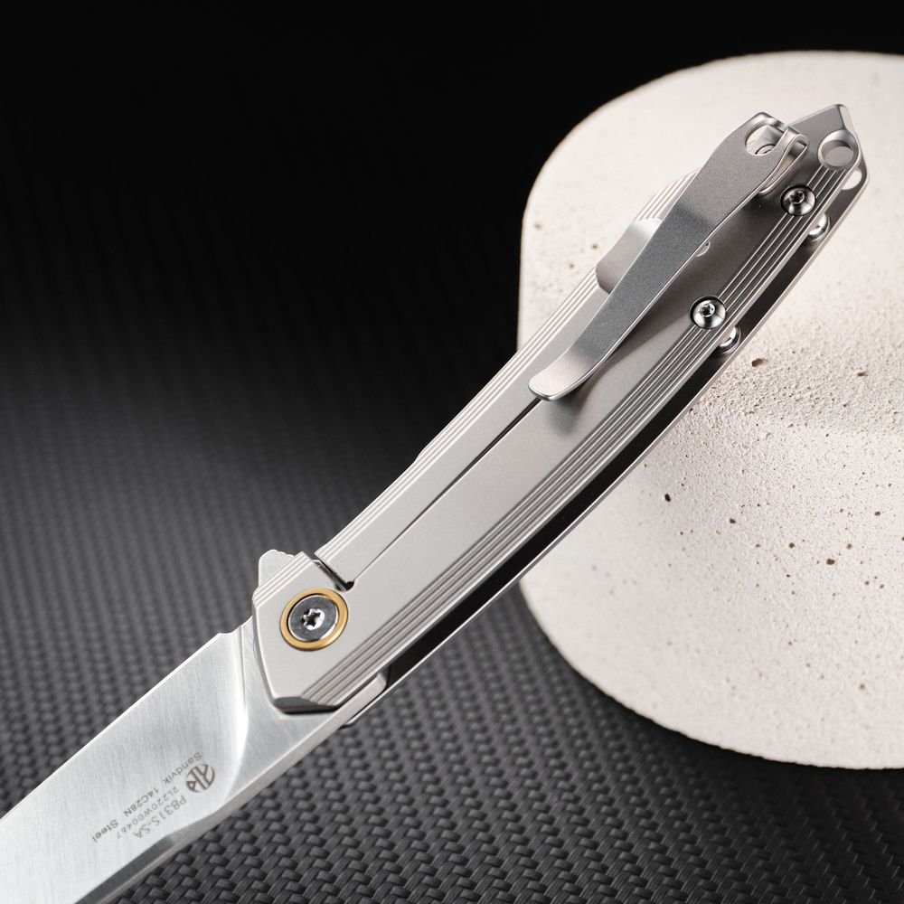 Руківʼя Ruike P831S-SA також виготовлено з нержавіючої сталі, але з іншої марки — 3Cr14N. Довжина руківʼя досягає 110 мм, забезпечуючи комфортне утримання інструмента. З правого боку конструкції закріплена металева кліпса, а в хвості є круглий отвір для темляка. Вага моделі складає 93 грами.