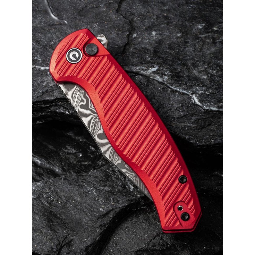 Модель має складану конструкцію: 83.8 мм припадають на клинок з прямим заточуванням, а 110.3 мм — на руківʼя яскраво-червоного відтінку. Для розкриття леза достатньо натиснути на плавець фліпера, після чого ніж миттєво відкривається до фіксації, за яку відповідає замок button lock. Виробник приділив особливу увагу механіці та укомплектував інструмент керамічними підшипниками, що значно покращило плавність ходу леза.
