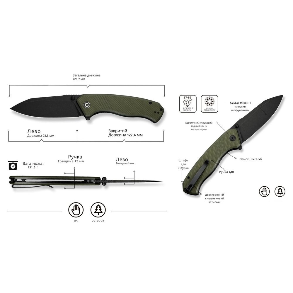 Повнорозмірний ніж складаного формату Civivi Placoid — це універсальна модель для повсякденного носіння (EDC). Інструмент оснащений клинком Clip Point з прямою різальною кромкою та характерним тонким кінчиком, що робить ніж універсальним для різання й роботи на укол.
