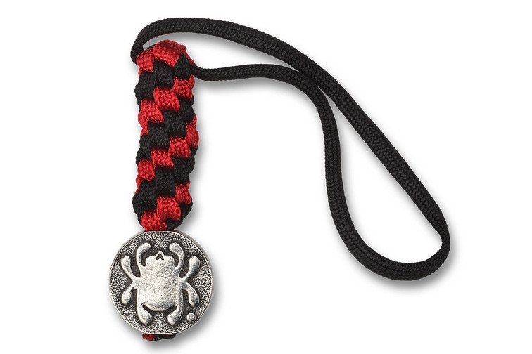 Темляк сплетен из паракорда черного и красного цвета. Бусина оловянная, с выпуклым логотипом компании Spyderco. Стильное дополнение к ножу, которое может быть вполне функциональным, например, при извлечении ножа из кармана.