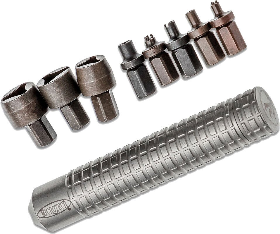 Інструмент Microtech Kit являє собою компактний набір із власника й насадок-ключів для старих і нових моделей ножів Microtech. Власник виконаний з титанового сплаву. Кришка власника відгвинчується. Усередині можна зберігати до 3 маленьких біт (насадок). Кожна насадка виготовлена із загартованої сталі. У набір входить: насадка-ключ для склобою Combat Troodon і Dirac Delta, ключ для гвинтів ранніх моделей Ultratech, ключ для склобою Ultratech, ключ для гвинтів UTX-70, ключ для гвинтів Dirac, ключ для осьового гвинта моделей LUDT і Sigil, ключ для гвинтів Troodon, Ultratech, UTX-85, Combat Troodon і Dirac Delta.